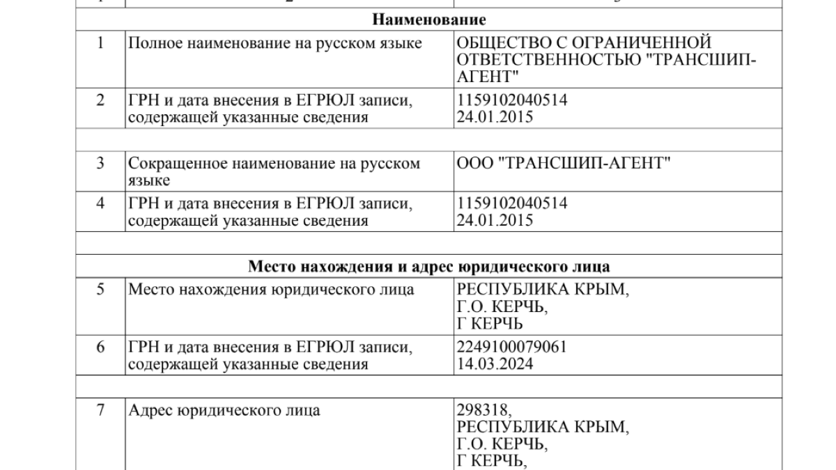 У матеріалах справи зазначається, що після 2014 року група компаній використовувала підприємства, створені на території окупованого Криму, зокрема товариства "Краншип", "Трансшип-Агент" та "Керченська морська верф “Фрегат”. Слідство вважає, що через ці структури у 2022–2024 роках здійснювалася діяльність на користь держави-агресора.