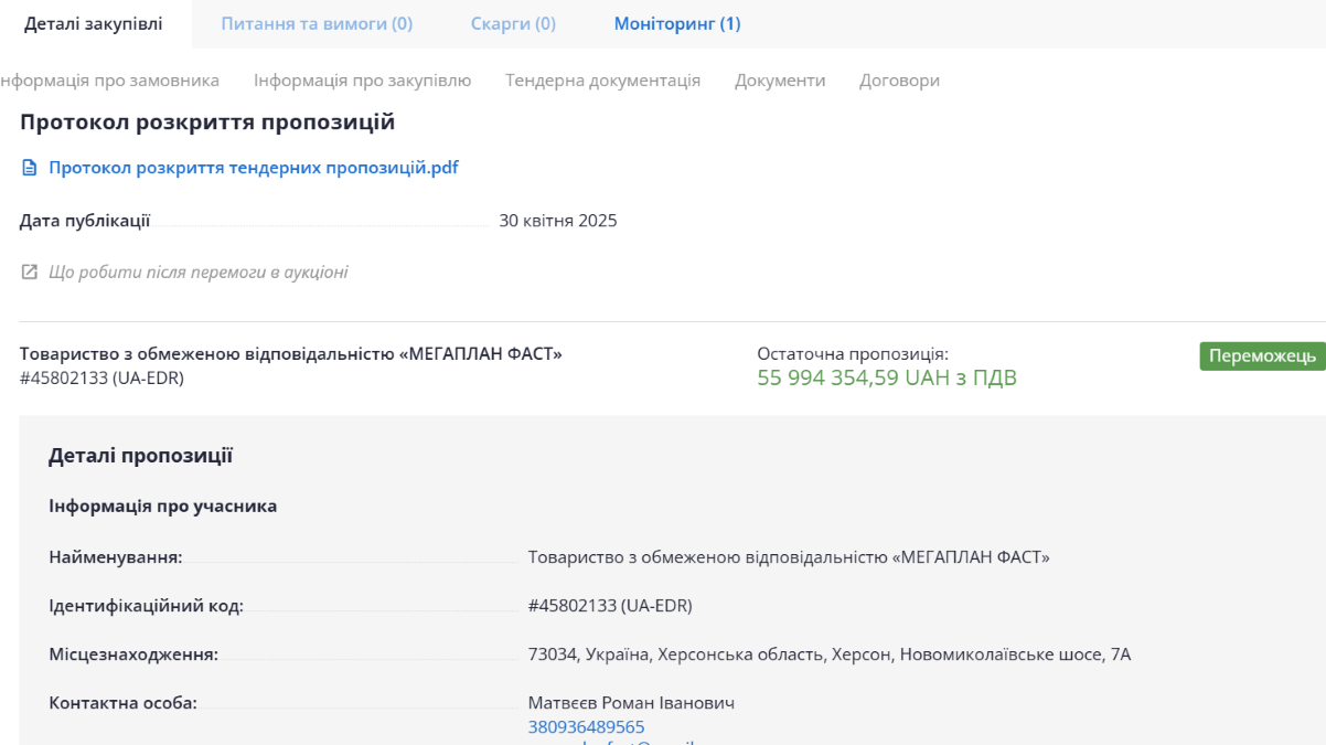 СКРИНШОТ: Prozorro