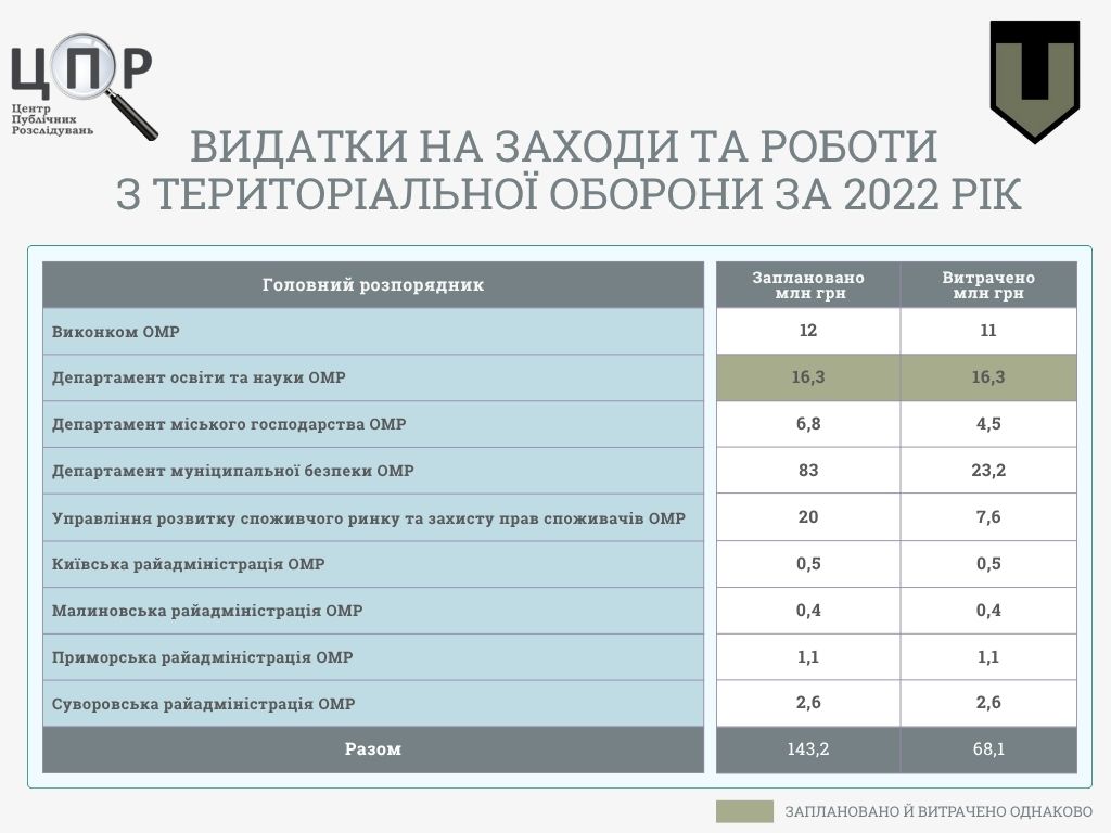 З наведеного аналізу очевидно: до початку повномасштабного вторгнення керівництво Одеси не сприймало розвиток територіальної оборони як пріоритет. А після 24 лютого 2022 року знадобилося одинадцять днів і публічний тиск — як з боку громадськості, так і з боку очільника ОВА Максима Марченка, — аби фінансування нарешті розпочалося.