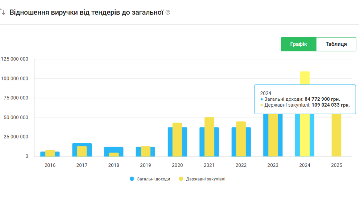 З 2016 року компанія заробила на державних тендерах понад 411 мільйонів гривень, майже всі — від портових адміністрацій. Найуспішнішим для компанії став 2024 рік, коли вона отримала підрядів більш ніж на 109 мільйонів гривень.
