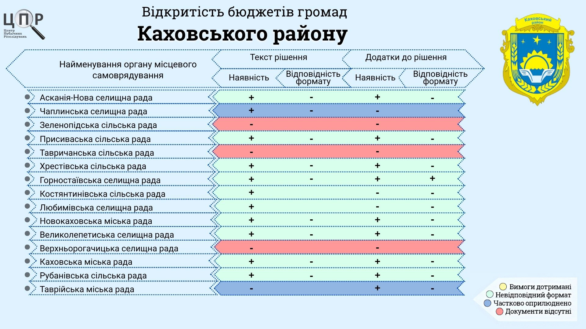 Тож моніторинг відкритості бюджетних документів у громадах Каховського району показав: