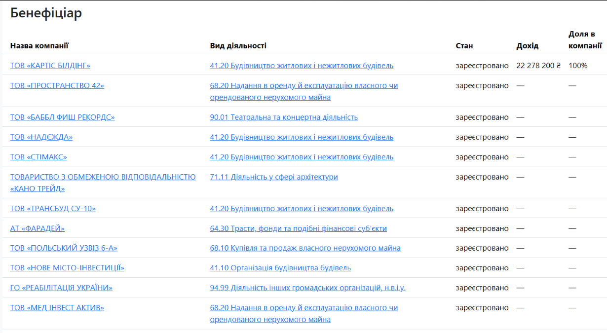 У справі зазначили й одеське колективне підприємство "Будова". Частина цих грошей надалі переводилася на рахунок ТОВ "БК Дорлідер" та на підприємства-імпортери, зокрема ТОВ "ОКАРД Будінвест" і ТОВ "Арія Строй Град", де кошти потім конвертувалися в готівку.