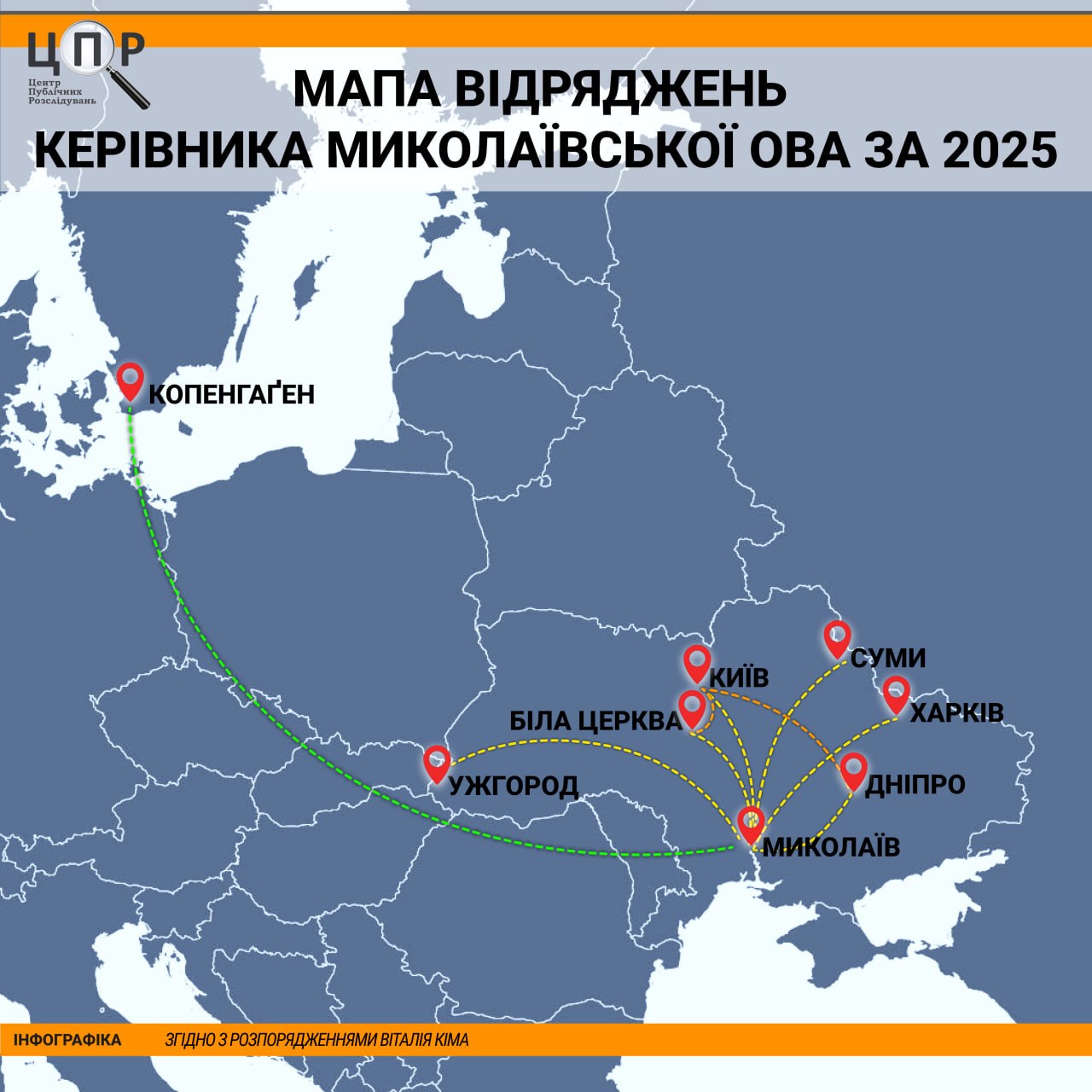 При спробі знайти на офіційному сайті Миколаївської ОВА розпорядження про відрядження Віталія Кіма, Центр публічних розслідувань зіткнувся з проблемою: ця інформація на ресурсі відсутня. Проте дані вдалося отримати через офіційний запит. Це дозволило ЦПР простежити, куди саме виїжджав керівник ОВА та які завдання вирішував за межами регіону.