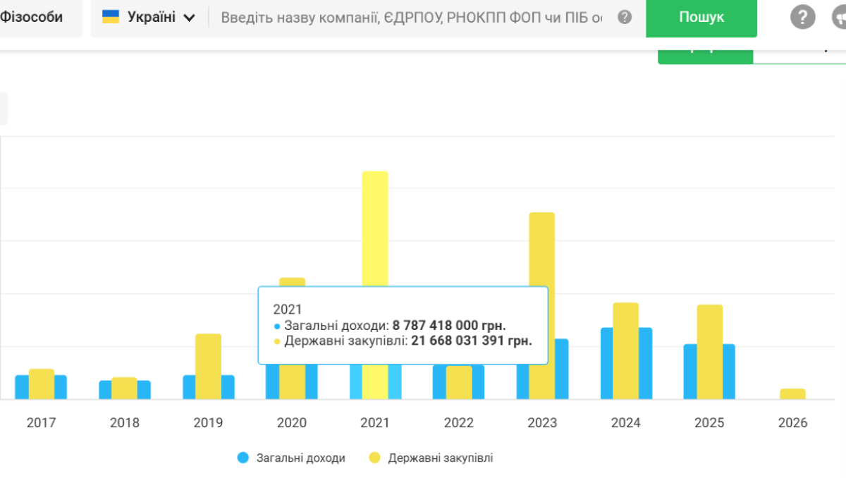 Компанія згадувалася щонайменше у двох десятках журналістських розслідувань і отримала державних підрядів на суму понад 88,5 мільярда гривень.