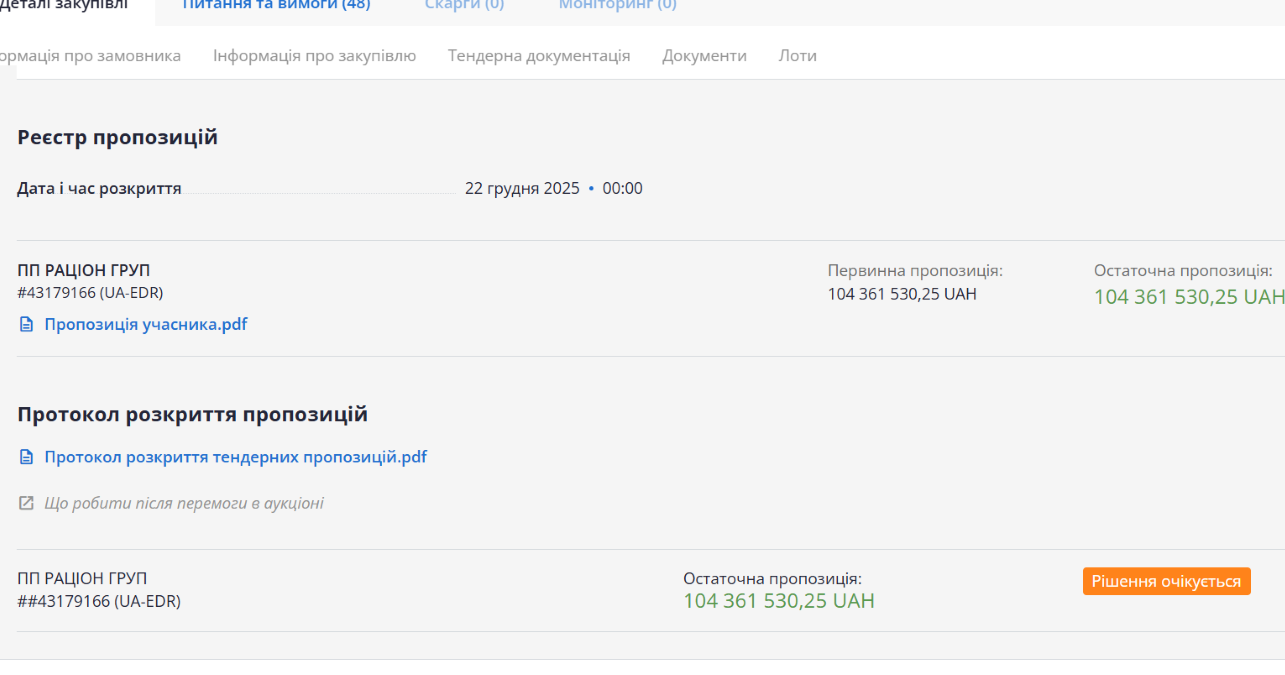 Для організації харчування у Київському та Хаджибейського районів також подало пропозицію лише одне підприємство, яке й визнали переможцем, — ПП "Раціон Груп".