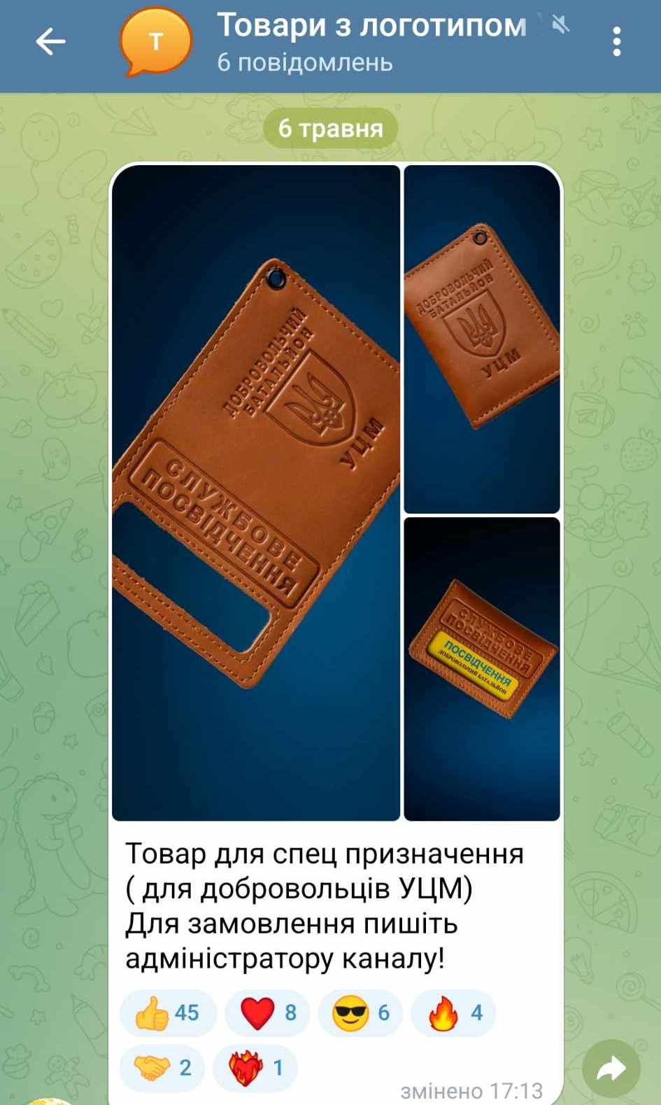 ЦПР тоді також звернув увагу, що серед гілок групи "Україна – це матір" була гілка "товари з логотипом". Там пропонували замовити собі обкладинку службового посвідчення "Добровольчий батальйон УМЦ".