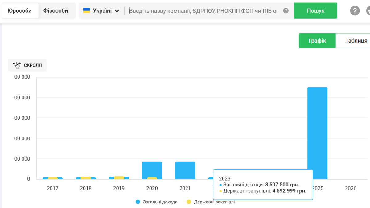 За даними аналітичної системи YouControl, підприємство було зареєстроване у 1997 році в Донецькій області, хоч наразі вказана Київська, засновником є Тарас Сивокобильсткий. Основний КВЕД — будівництво житлових і нежитлових будівель. Підприємство брало участь у держтендерах з 2017 року 1 заробило понад 22 мільйони гривень. За всі роки — це найдорожчий підряд компанії.