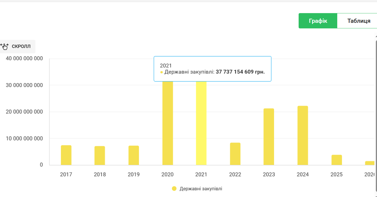 Лише у 2021 році вона уклала контрактів на 58,9 мільярда гривень, а загалом через державні закупівлі заробила понад 155 мільярдів гривень.
