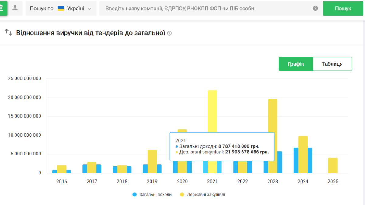 Підприємство фігурувало у щонайменше 20 журналістських розслідуваннях і заробило на державних тендерах понад 85,5 мільярда гривень.