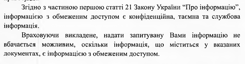 Втім і на цей запит у військовій адміністрації відповіли відмовою, зазначивши, що запитувана інформація також належить до інформації з обмеженим доступом.