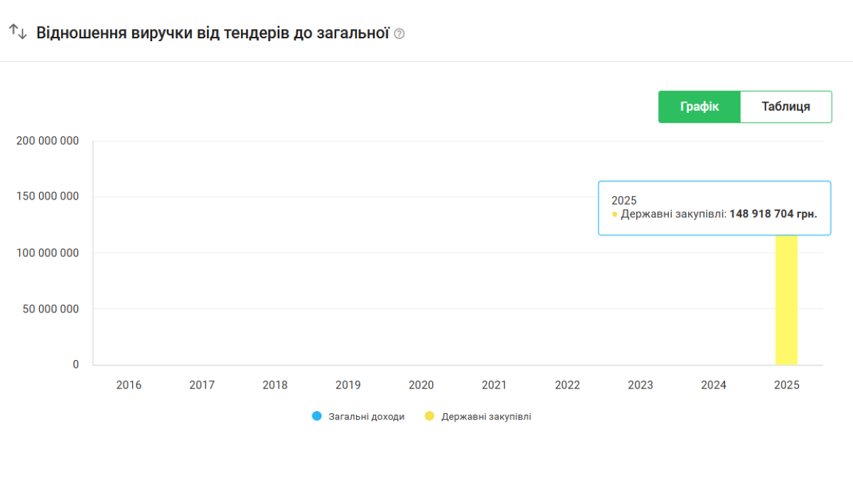 Про це повідомив Центр публічних розслідувань з посиланням на дані Prozorro.