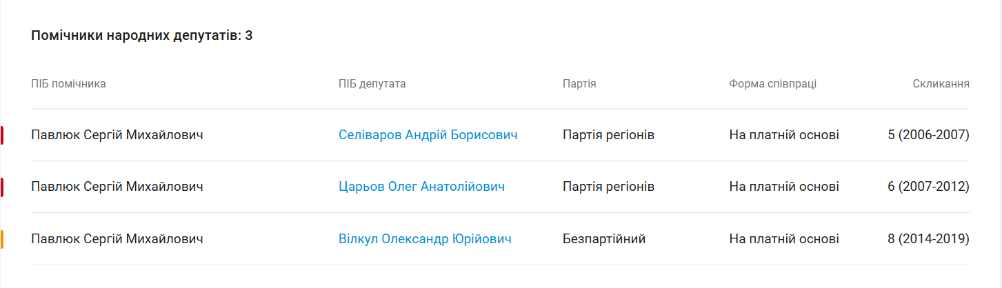 46-річний Павлюк працював ще й помічником одразу кількох відомих "регіоналів". Зокрема, нардепів Андрія Селіварова та нинішнього мера Кривого Рогу Олександра Вілкула. У 2012 році Павлюк навіть балотувався до парламенту за списком "Партії регіонів", але не пройшов.