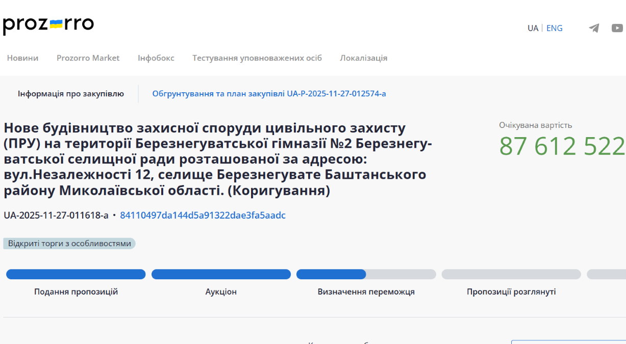 На Миколаївщині виділили 86 мільйонів гривень на будівництво укриття для Березнегуватської гімназії №2. Підряд отримало підприємство з корупційними ризиками, і відбулося це без проведення конкурсу.